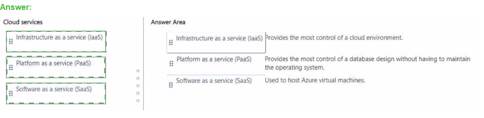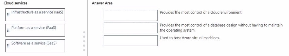 To answer, drag the appropriate cloud service from the column on the left to its description