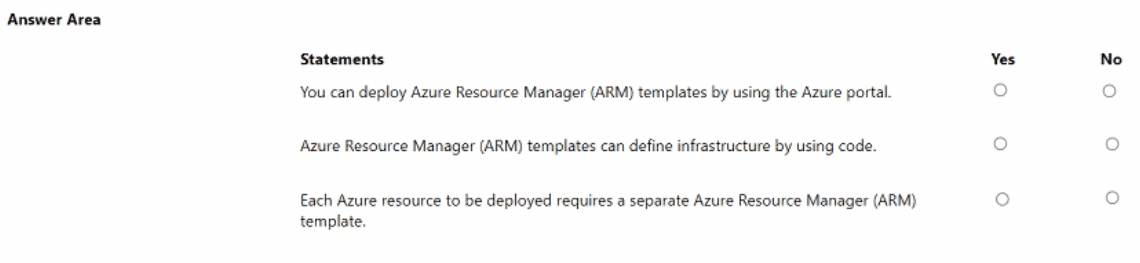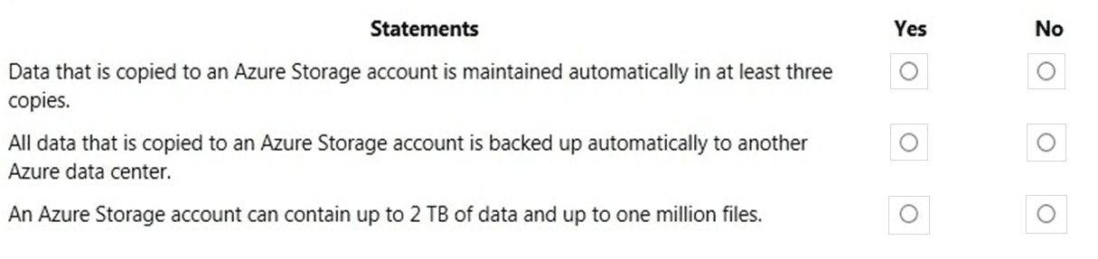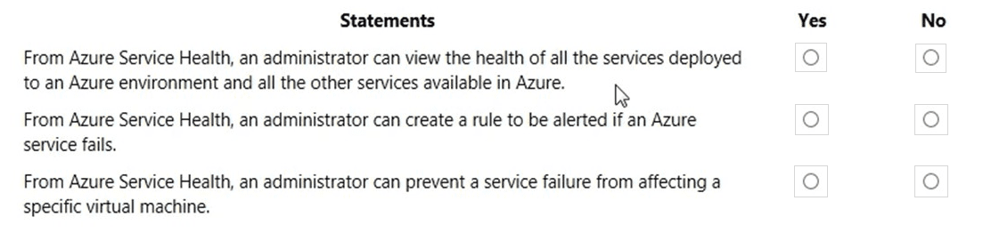 For each of the following statements, select Yes if the statement is true. Otherwise, select
