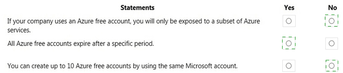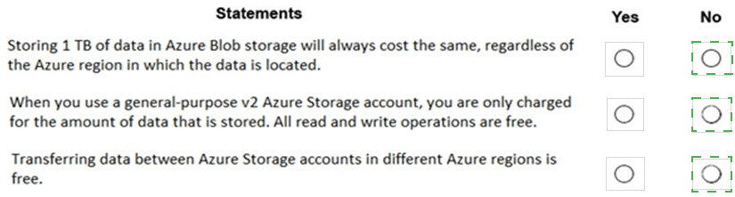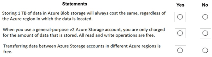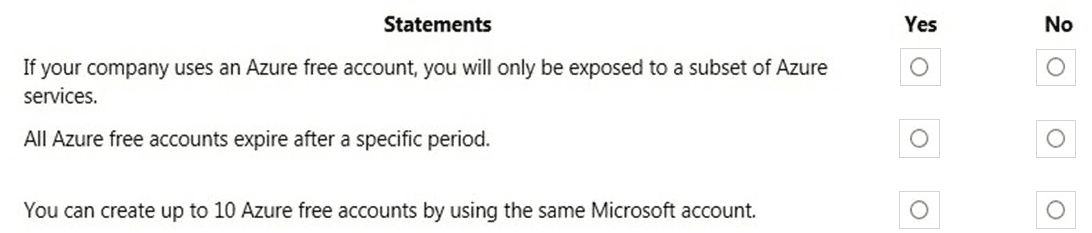 For each of the following statements, select Yes if the statement is true. Otherwise, select