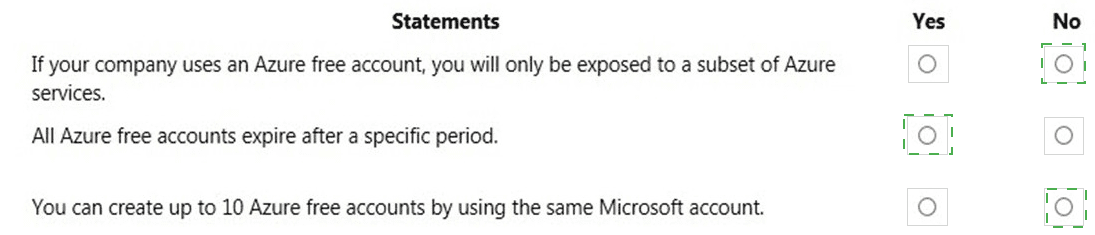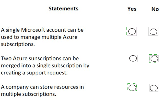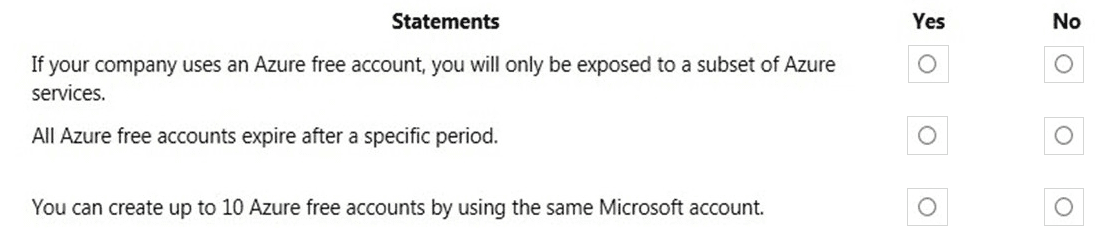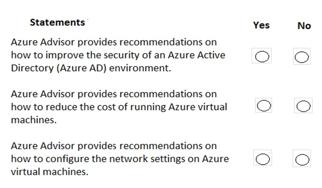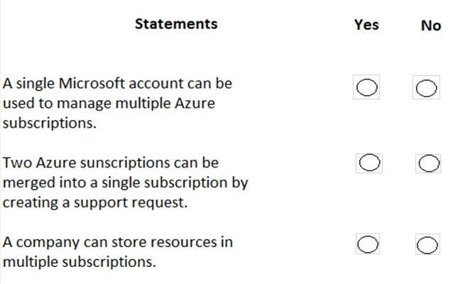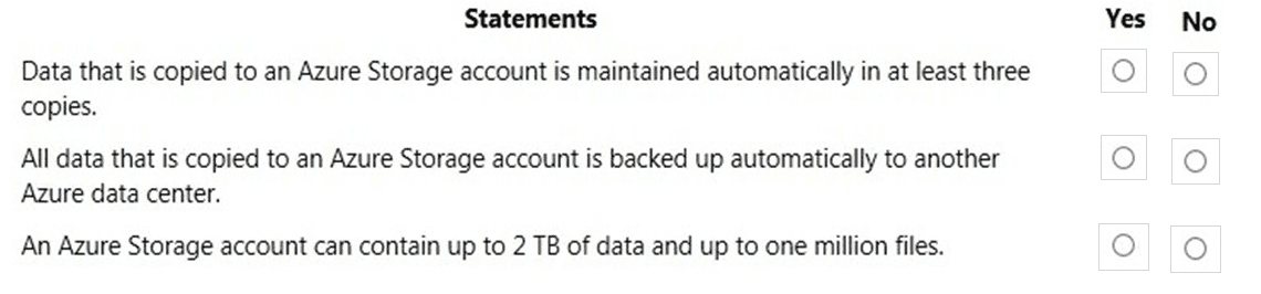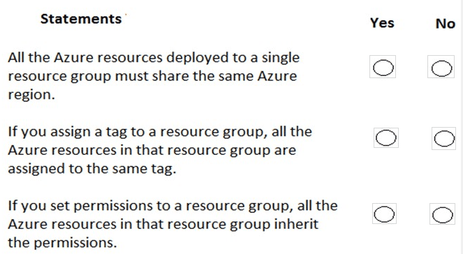 For each of the following statements, select Yes if the statement is true. Otherwise, select