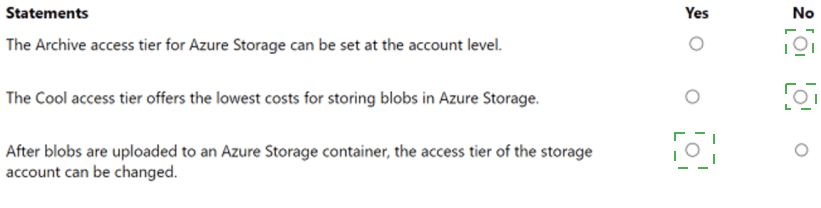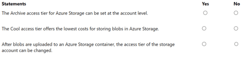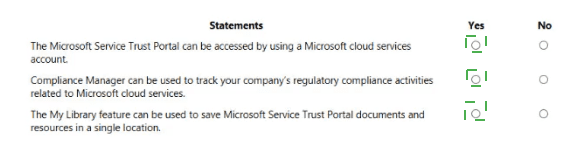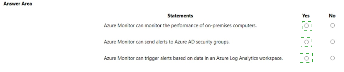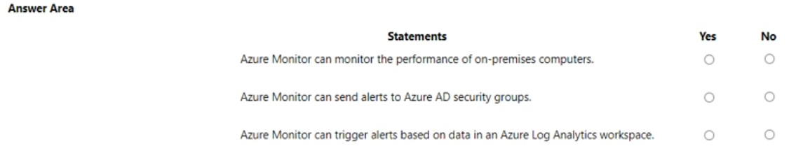 For each of the following statements, select Yes if the statement is true, Otherwise, select