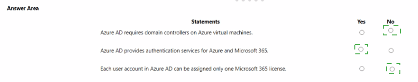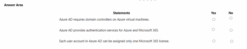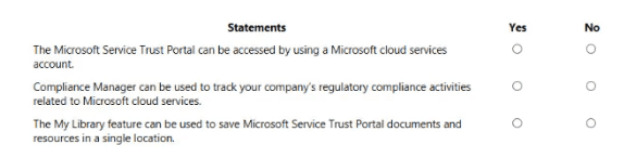 For each of the following statements, select Yes if the statement is true. Otherwise, select