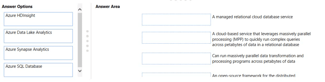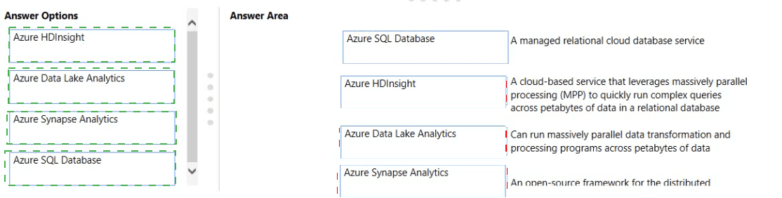 Instructions: To answer, drag the appropriate Azure service from the column on the left to