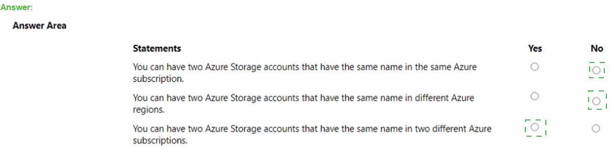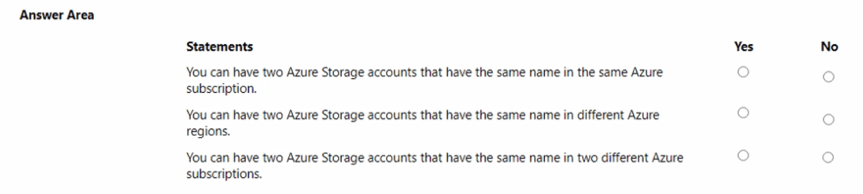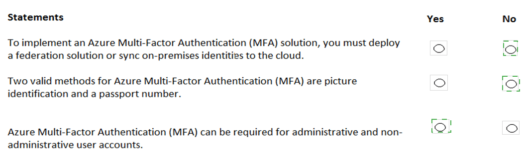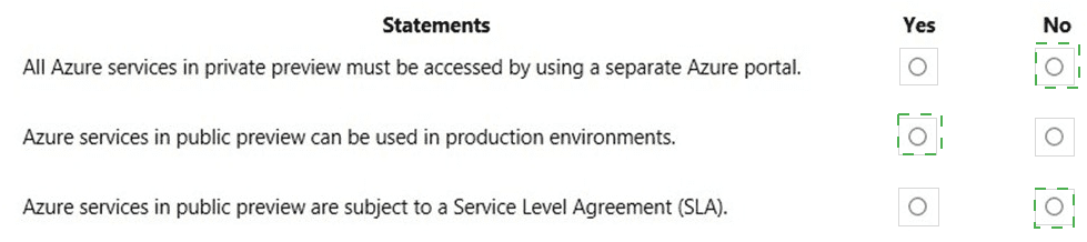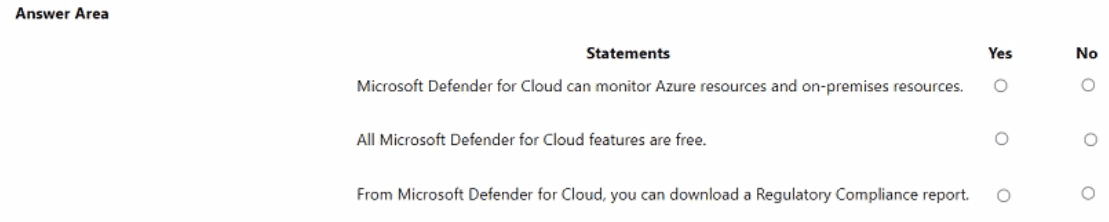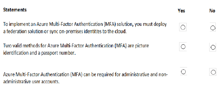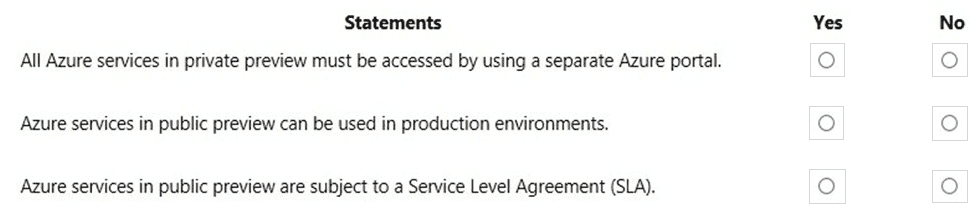 For each of the following statements, select Yes if the statement is true. Otherwise, select