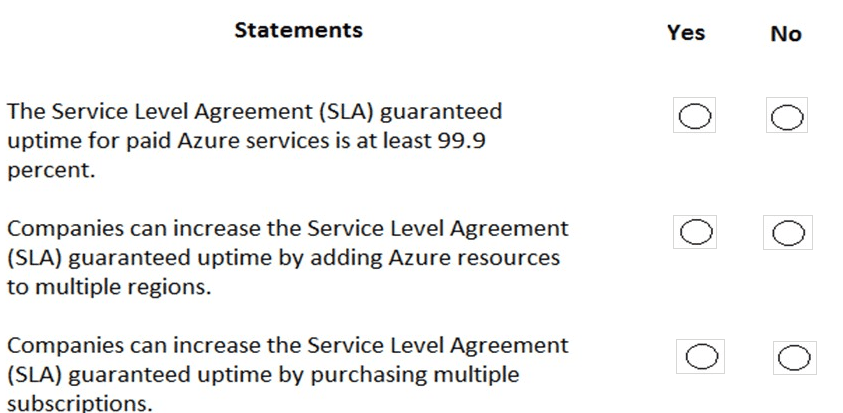For each of the following statements, select Yes if the statement is true. Otherwise, select