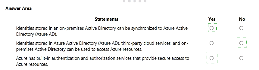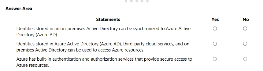 For each of the following statements, select Yes if the statement is true. Otherwise, select