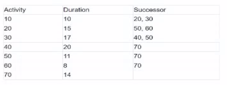 Develop a CPM method considering the below tasks and logical relationships. Use this