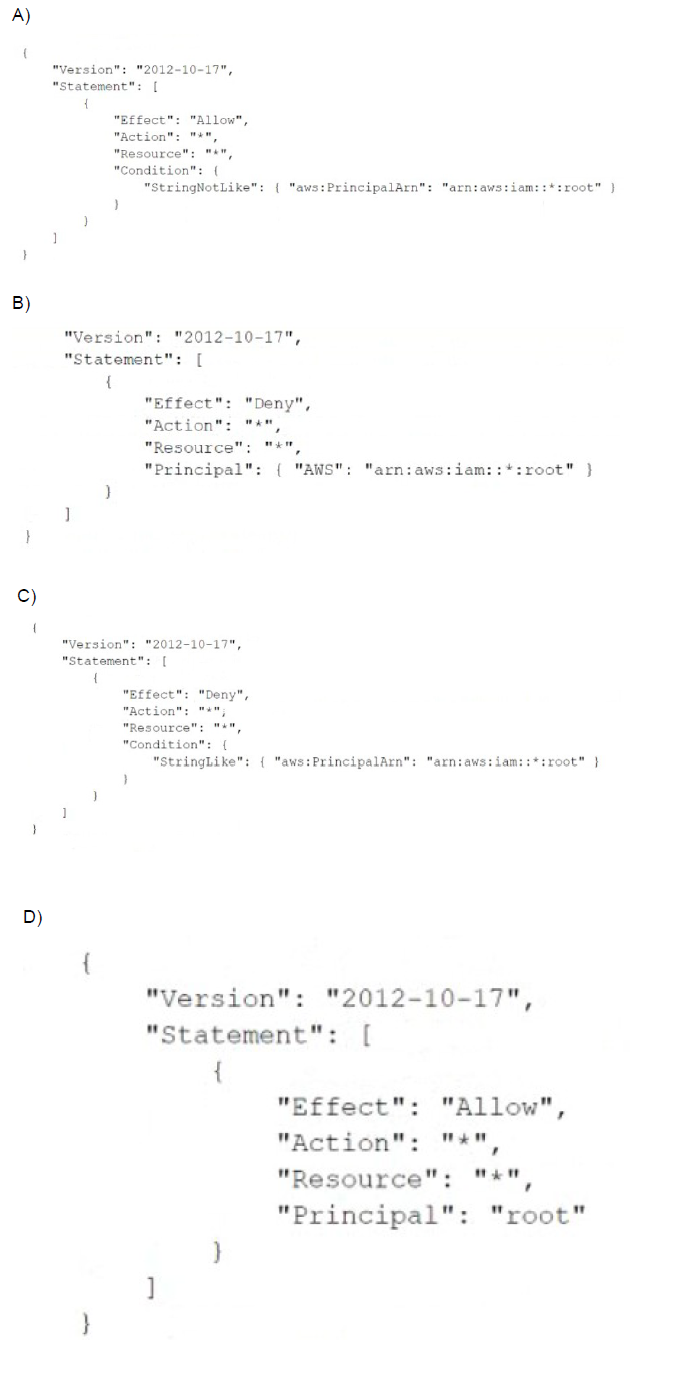 instance. A DevOps engineer must create an SCP at the organization's root level that will