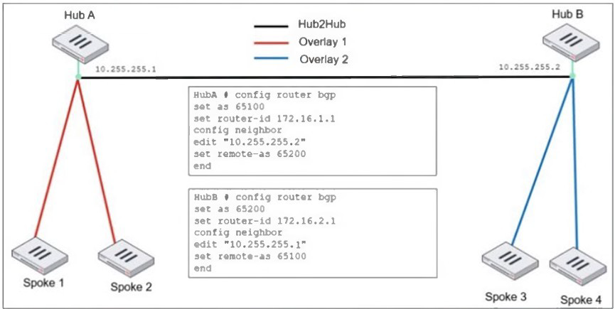 An administrator must configure an ADVPN using IBGP and EBGP to connect overlay