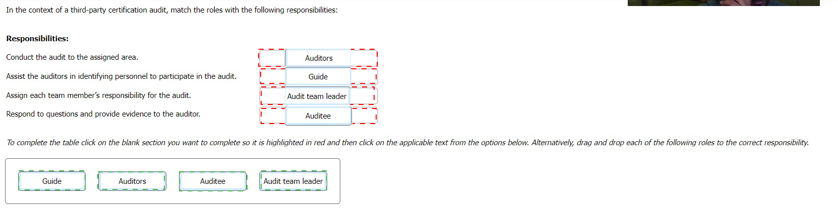 F. A guide - a person who is appointed by the auditee to assist the audit team during the audit.