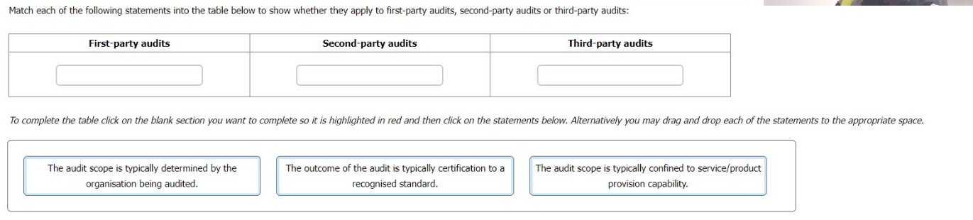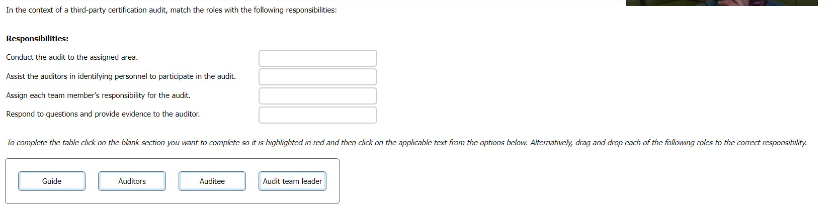 •B. An auditor from an interested party: This auditor could be a first-party auditor, as long as the interested party is within the organization being audited. For example, an auditor