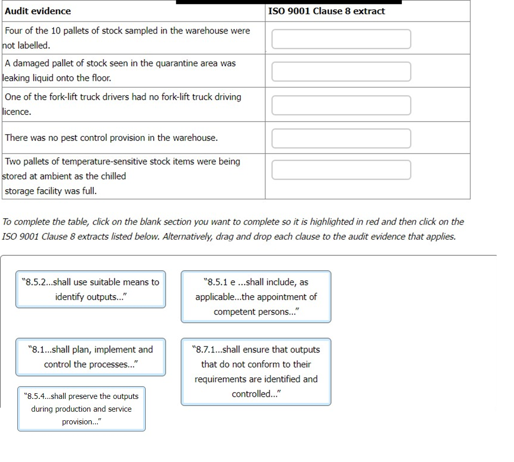 From the following nonconformities, select three that the auditor could raise to ISO 9001.