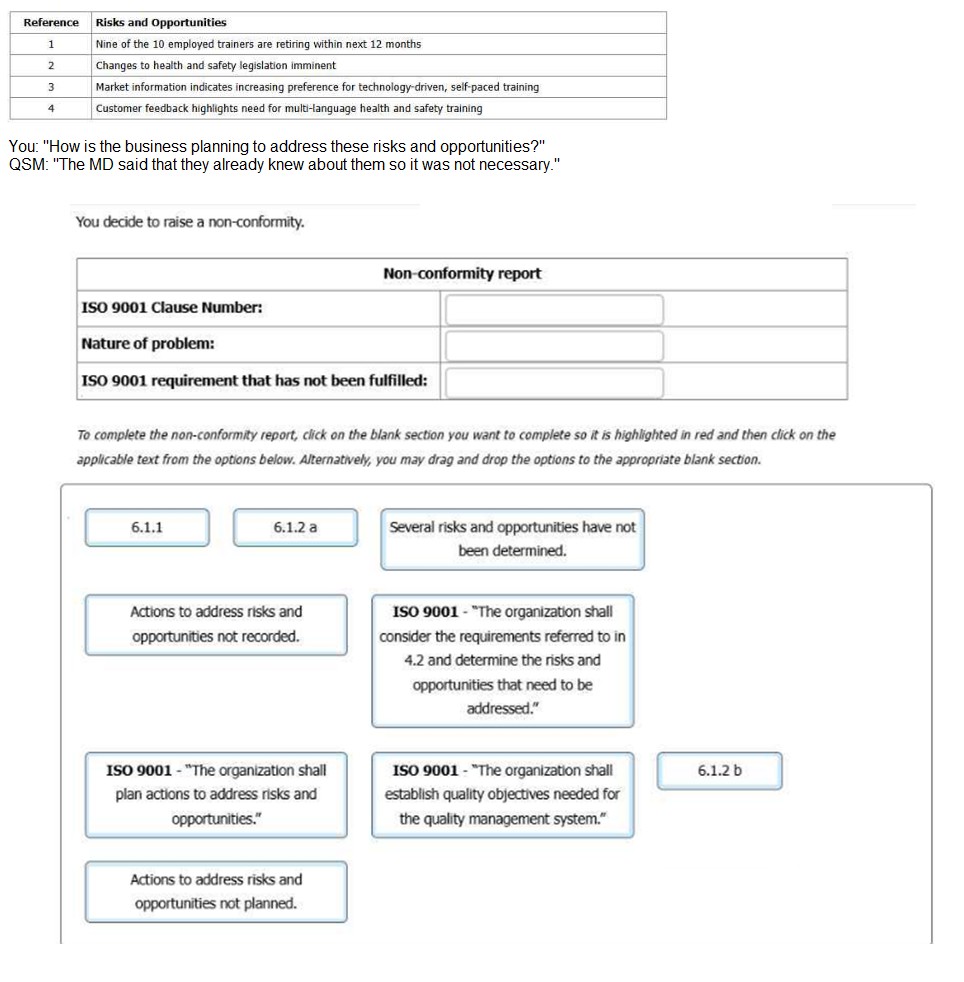 or ask staff members about their processes. You decide to raise a nonconformity.