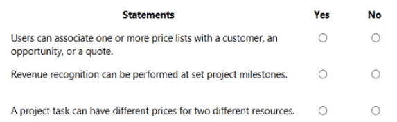 Users can associate one or more price lists with a customer, an opportunity, or a quote (Yes):