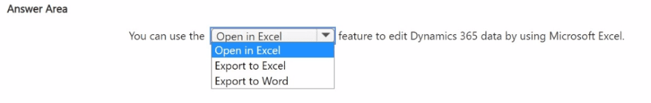 This option is incorrect for this requirement because it creates a static file. While it allows you to view and analyze Dynamics 365 data in Excel, any changes made to the resulting spreadsheet cannot be synced back to the system; it is a one-way data transfer only.