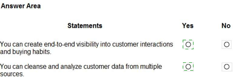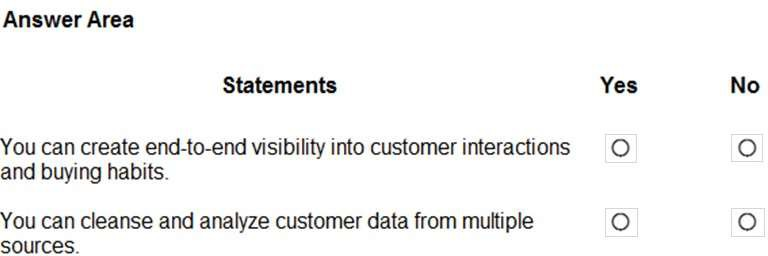 A company plans to implement Dynamics 365 Customer Insights and use the audience insights capability. Instructions: For each of the following statements, select Yes if the statement is true. Otherwise, select No. NOTE: Each correct selection is worth one point.