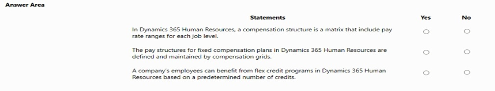 No. This statement incorrectly swaps key terms. In D365 HR, a Compensation structure is the high-level framework (e.g., "Grade-based" or "Step-based") that determines how pay is administered. The matrix containing the actual pay rate ranges for each job level is called the Compensation grid. The grid is a component within a structure.