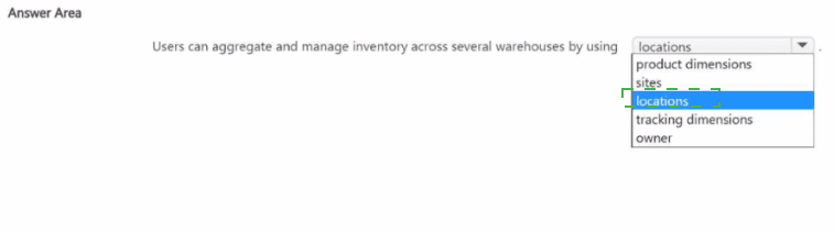 This question asks for the highest-level organizational feature in Dynamics 365 Supply Chain Management that is used to aggregate and manage inventory across multiple warehouses. The key term is "aggregate," meaning you need a feature that acts as a parent container, allowing you to view and manage the total inventory of all the warehouses under it.