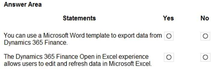 Instructions: For each of the following statements, select Yes if the statement is true.