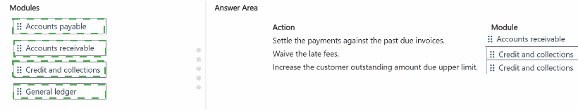 Which modules should you use? To answer, drag the appropriate modules to the correct actions. Each module may be used once, more than once, or not at all. You may need to drag the split bar between panes or scroll to view content.