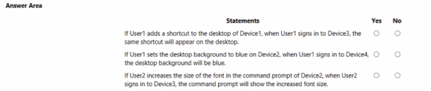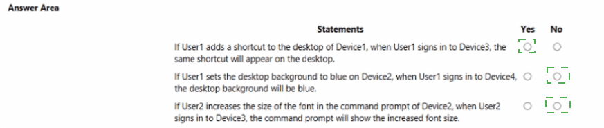 For each of the following statements, select Yes if the statement is true. Otherwise, select No. NOTE: Each correct selection is worth one point.