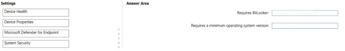 You have a Microsoft 365 subscription. The subscription contains computers that run Windows 11 and are enrolled in Microsoft Intune. You need to create a compliance policy that meets the following requirements: