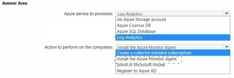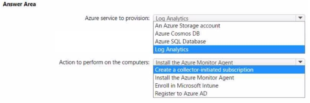 You need to capture the event togs from the computers to Azure.