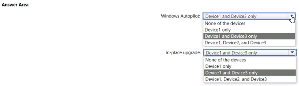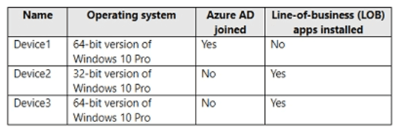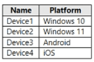You have a Microsoft 365 subscription that uses Microsoft Intune Suite. You use Microsoft Intune to manage devices. Azure AD joined Windows devices enroll automatically in Intune. You have the devices shown in the following table.