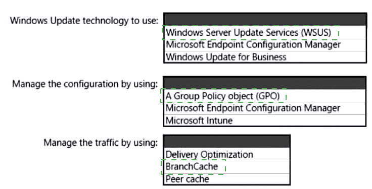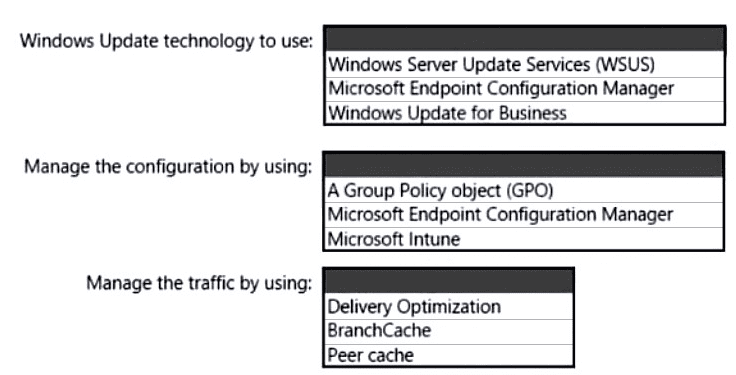 You need to configure Windows Update. The solution must meet the following requirements: