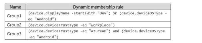 You have a Microsoft Entra tenant named contoso.com that contains the dynamic membership groups shown in the following table.