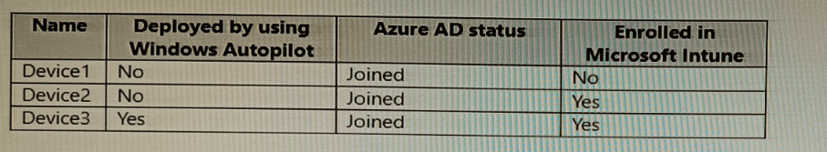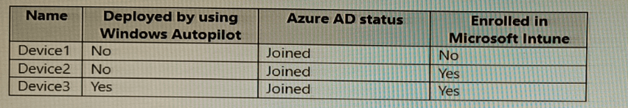 You have devices enrolled in Microsoft Intune as shown in the following table.