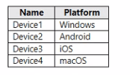 You have a Microsoft 365 subscription that contains the devices shown in the following