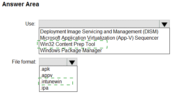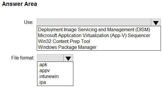 What should you use to package App1, and which file format will be used? To answer, select the appropriate options in the answer area.