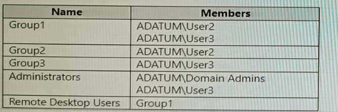 Computer2 contains the local groups shown in the following table.
