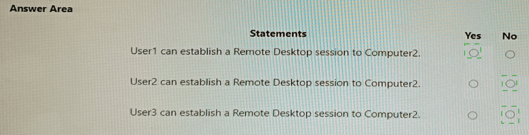Your network contains an Active Directory domain named adatum.com. The domain contains two computers named Computer1 and Computer2 that run Windows 10. Remote Desktop is enabled on Computer2.