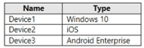 You have an Azure AD tenant named contoso.com that contains the devices shown in the