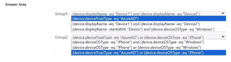 Which device membership rule should you configure for each group? To answer, select the