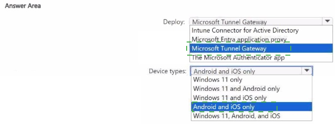 You need to implement Microsoft Tunnel for Mobile Application Management (MAM) to provide the devices with access to on-premises company apps.