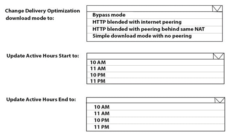 How should you configure the update settings? To answer, select the appropriate options in the answer area.