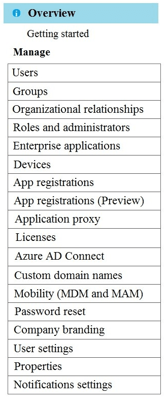Which two settings should you configure from the Azure Active Directory blade? To answer, select the appropriate settings in the answer area.