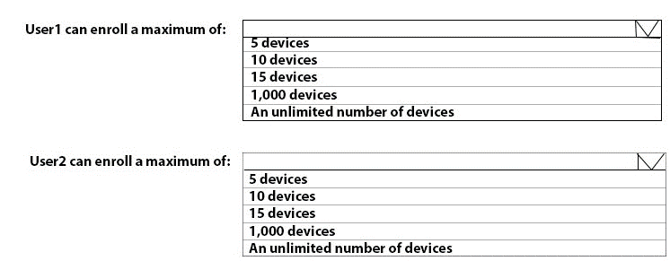 What is the maximum number of devices that User1 and User2 can enroll in Intune? To answer, select the appropriate options in the answer area.