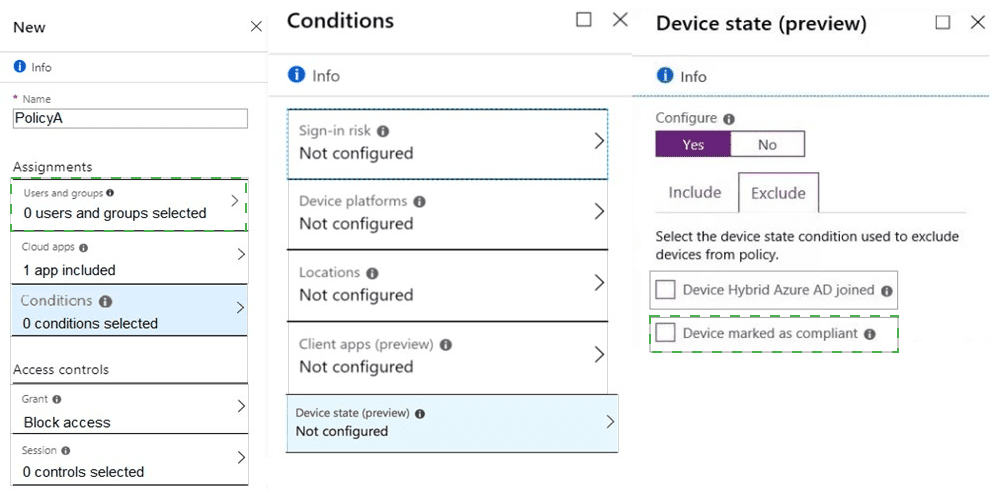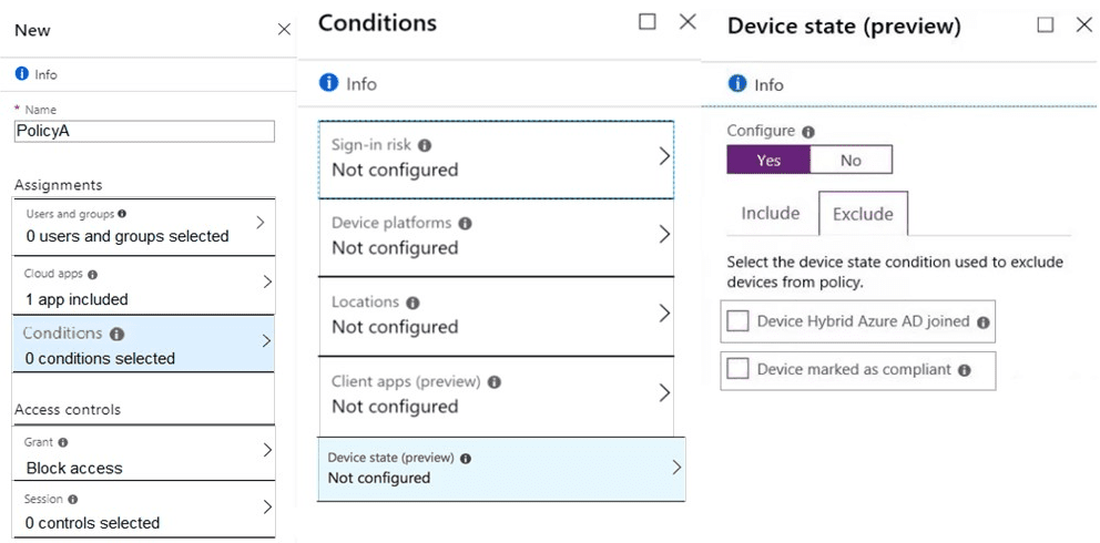Which two settings should you configure in the policy? To answer, select the appropriate settings in the answer area.