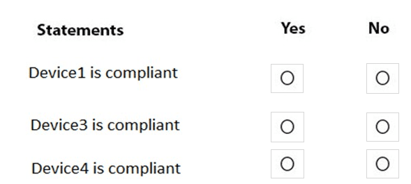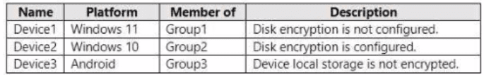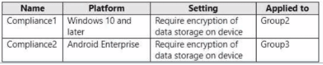 In Microsoft Intune, you have the device compliance policies shown in the following table.