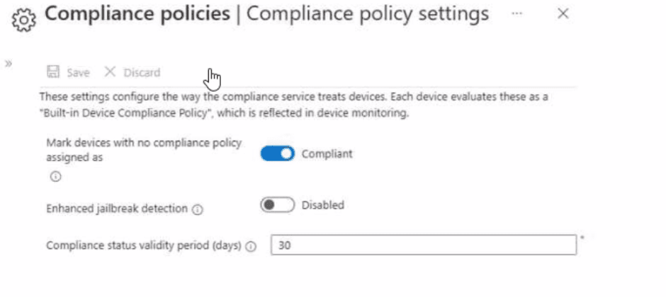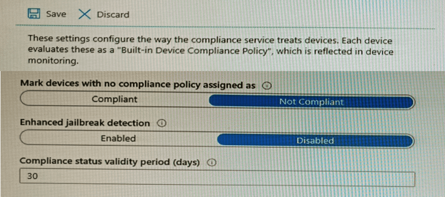 The Compliance policy settings are configured as shown in the exhibit. (Click the Exhibit