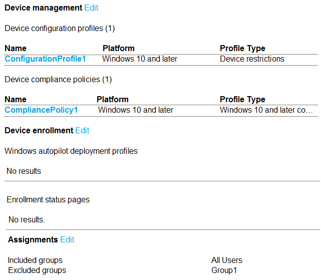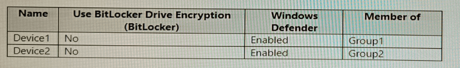 contains devices enrolled in Microsoft intune as shown in the following table.