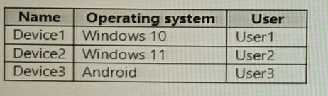 You enroll devices in Intune as shown in the following table.