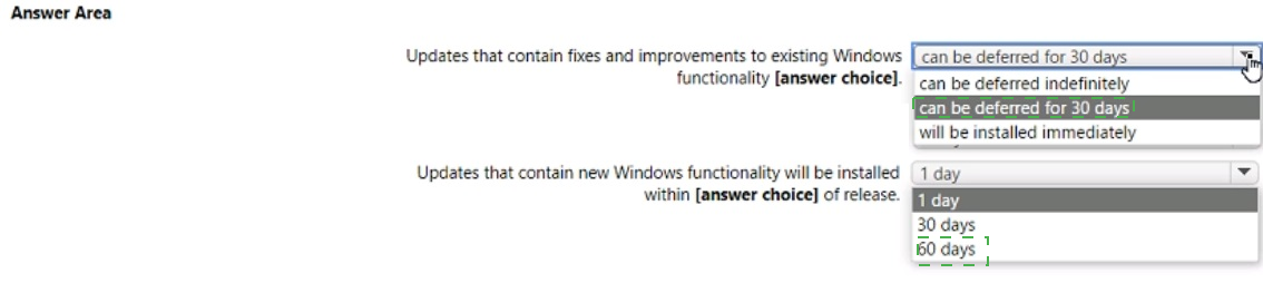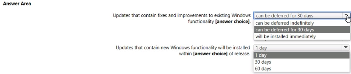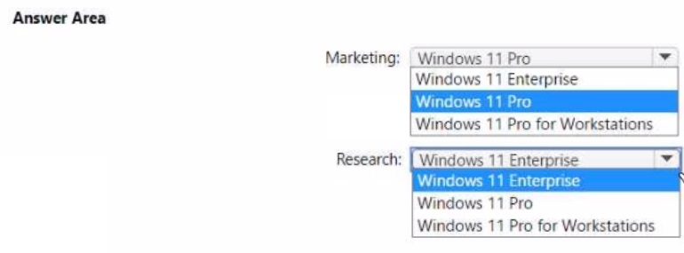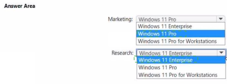 • Marketing department devices must support Windows Update for Business.
