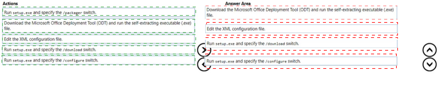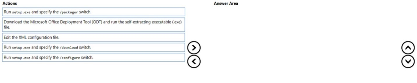 Which four actions should you perform in sequence? To answer, move the appropriate cmdlets from the list of cmdlets to the answer area and arrange them in the correct order.
