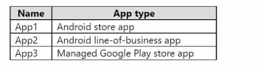 You add apps to Intune as shown in the following table.
