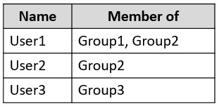 You have an Azure Active Directory (Azure AD) tenant that contains the users shown in the